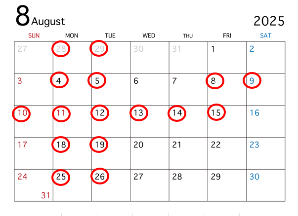 誠に勝手ながら8月8日㈮~8月15日㈮まで夏季体業とさせていただきます。